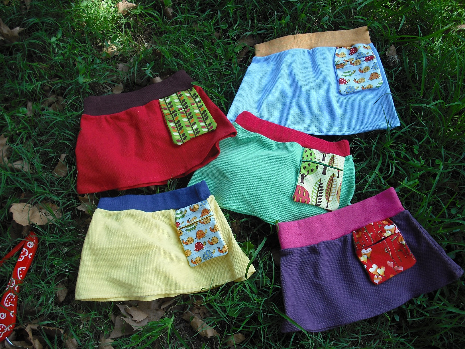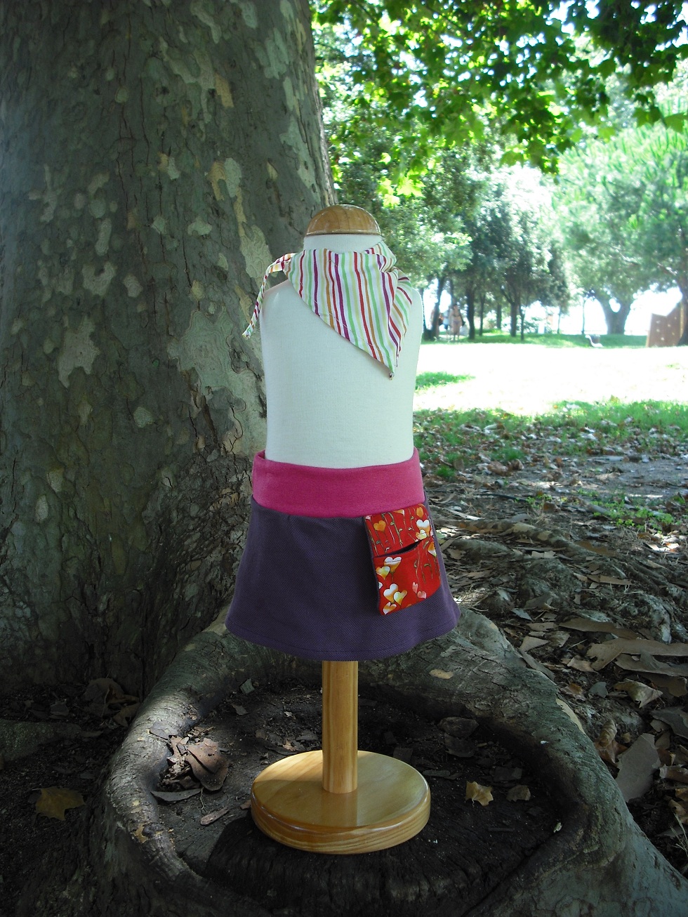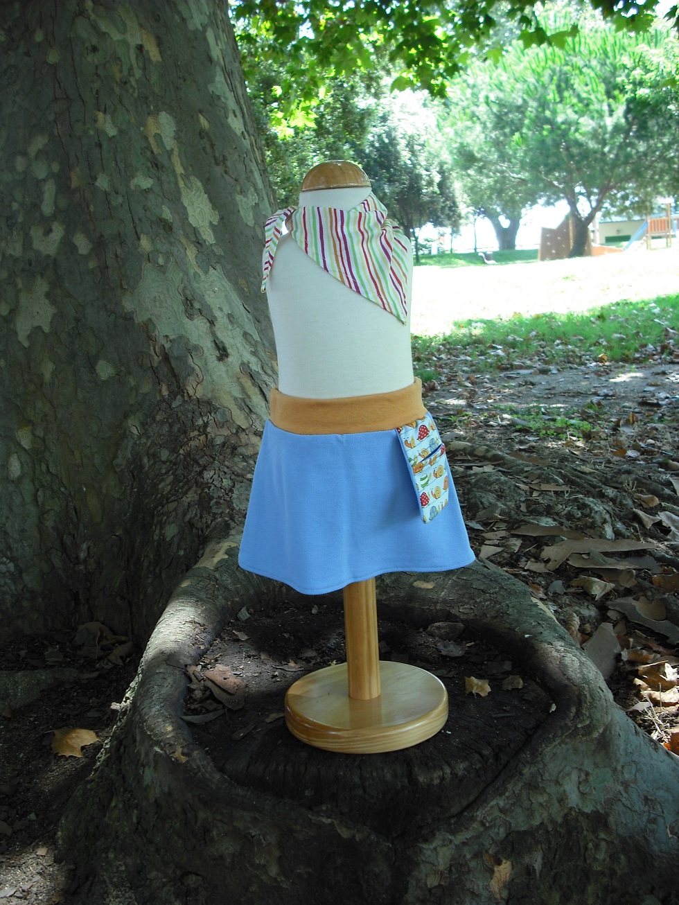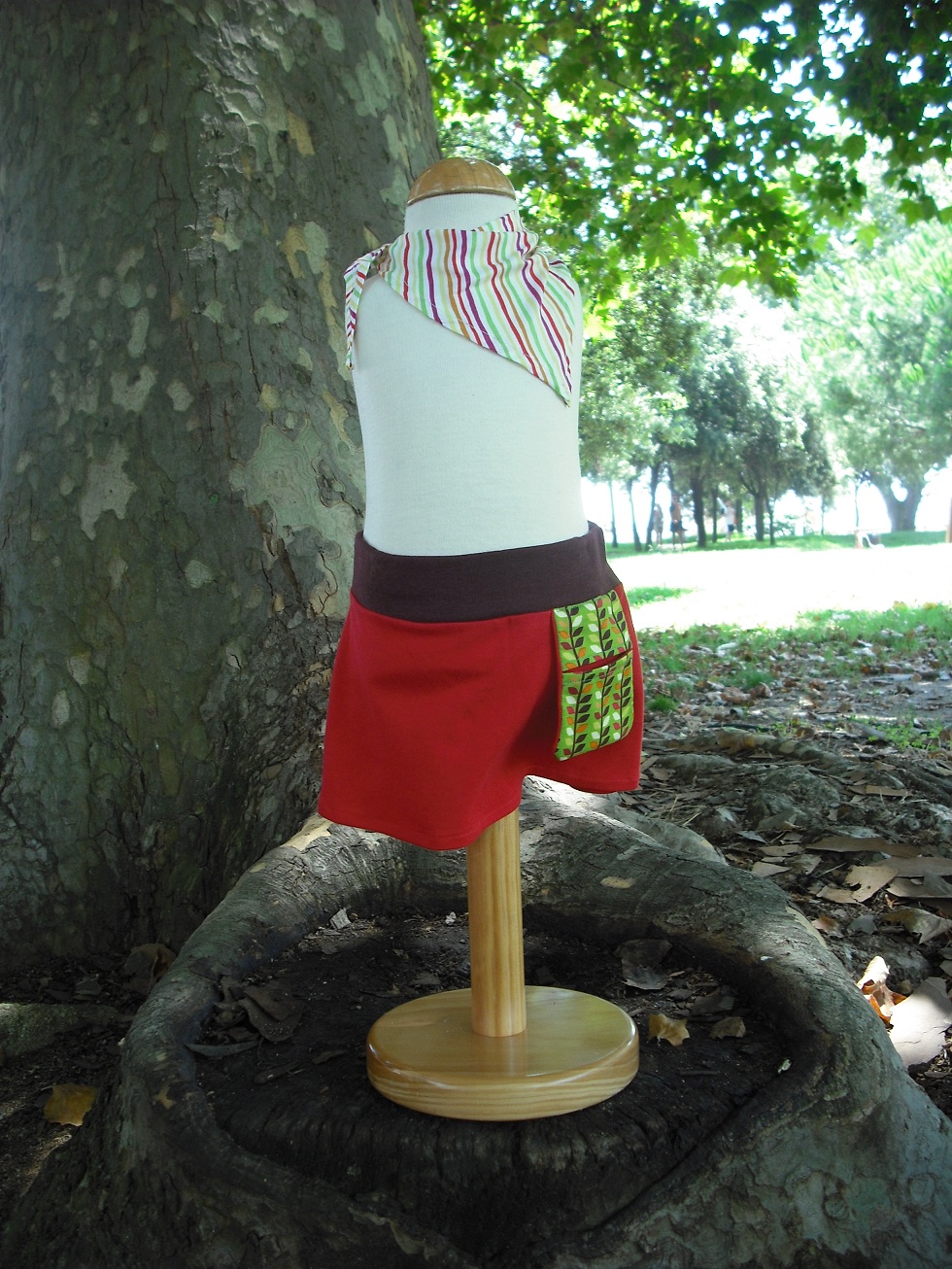 Faldas de algodón con cinturilla de canale ( con goma interior). Llevan un bolsillo con tejido estampado donde las niñas puedan guardar sus tesoros.