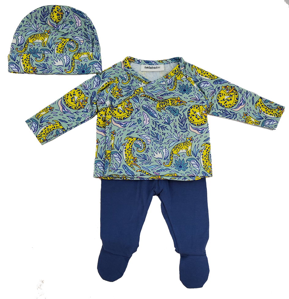 Conjunto de gorro, camiseta y pantalón ideal para los primeros días de vuestros bebés.