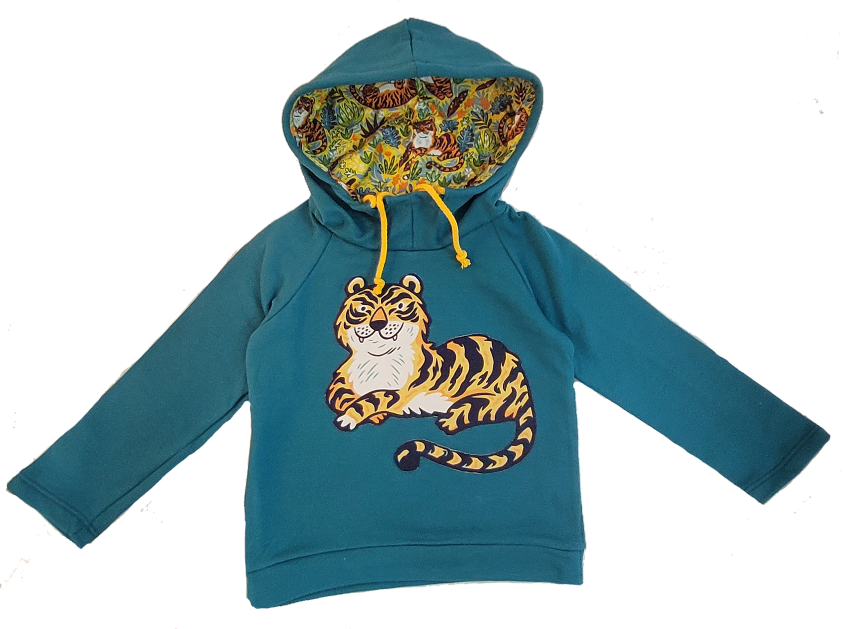 Sudadera en felpa de algodón orgánico con capucha y aplique cosido.