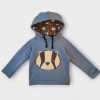 Sudadera de corte oversize en felpa de algodón orgánico. Tiene un amplio bolsillo frontal para guardar tesoros y aplique cosido de adorables animales que acompañaran a vuestros peques en sus aventuras.