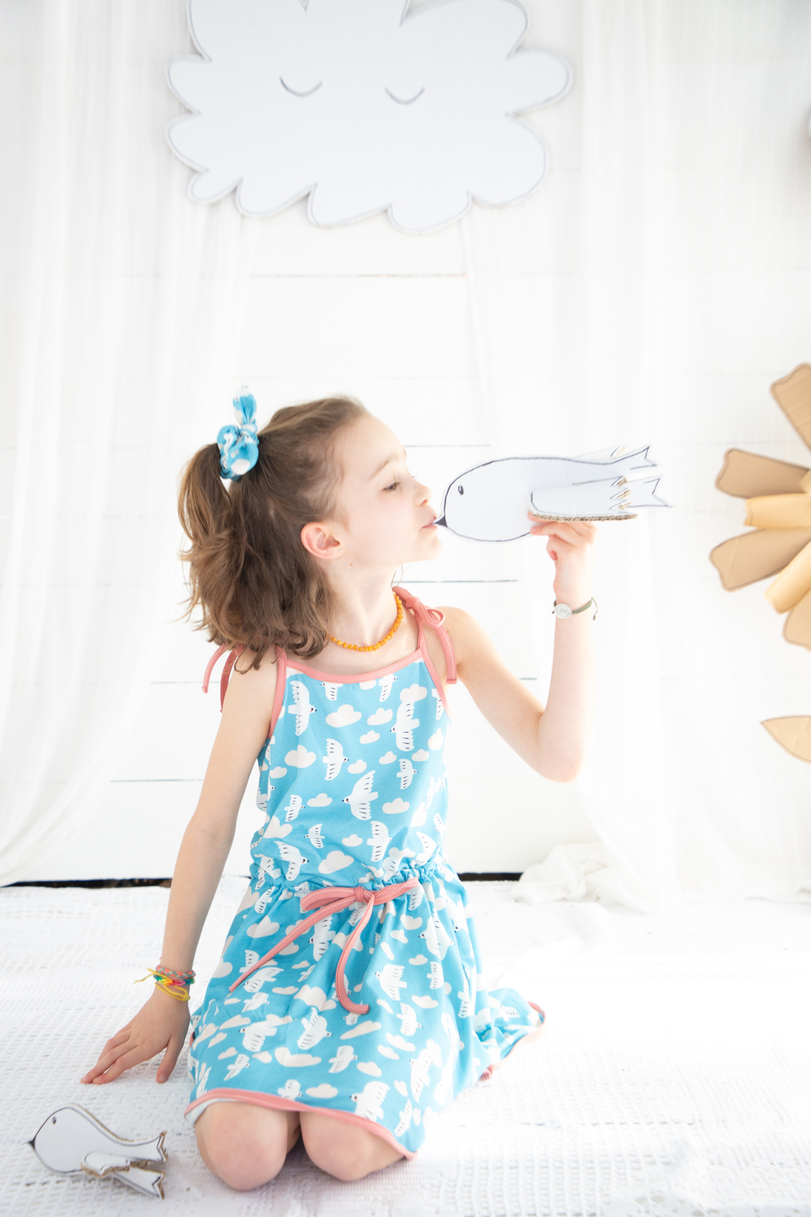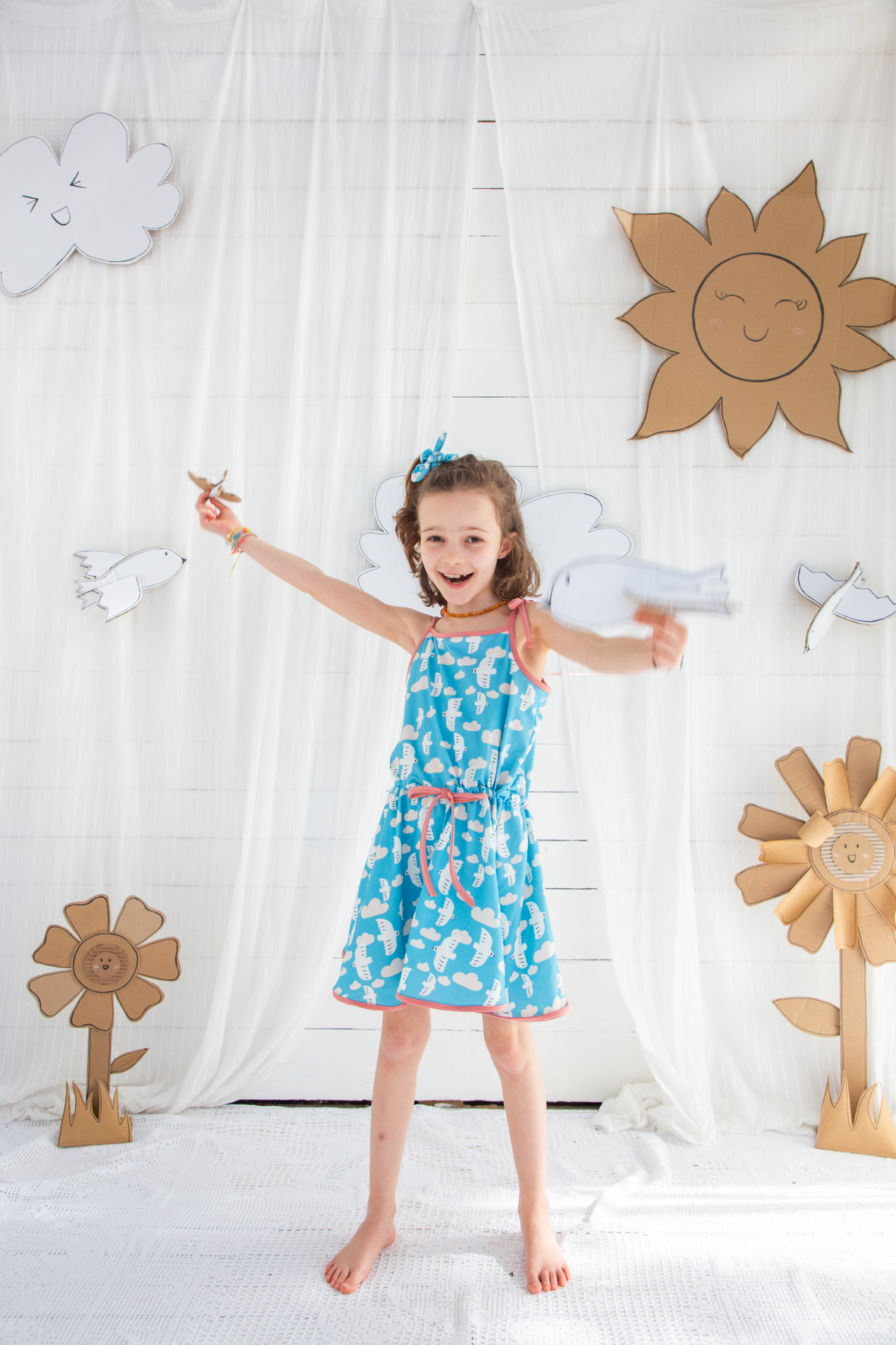 Vestido para niñas de 1 a 8 años con tirante regulable y falda de vuelo para poder girar hasta el cielo.