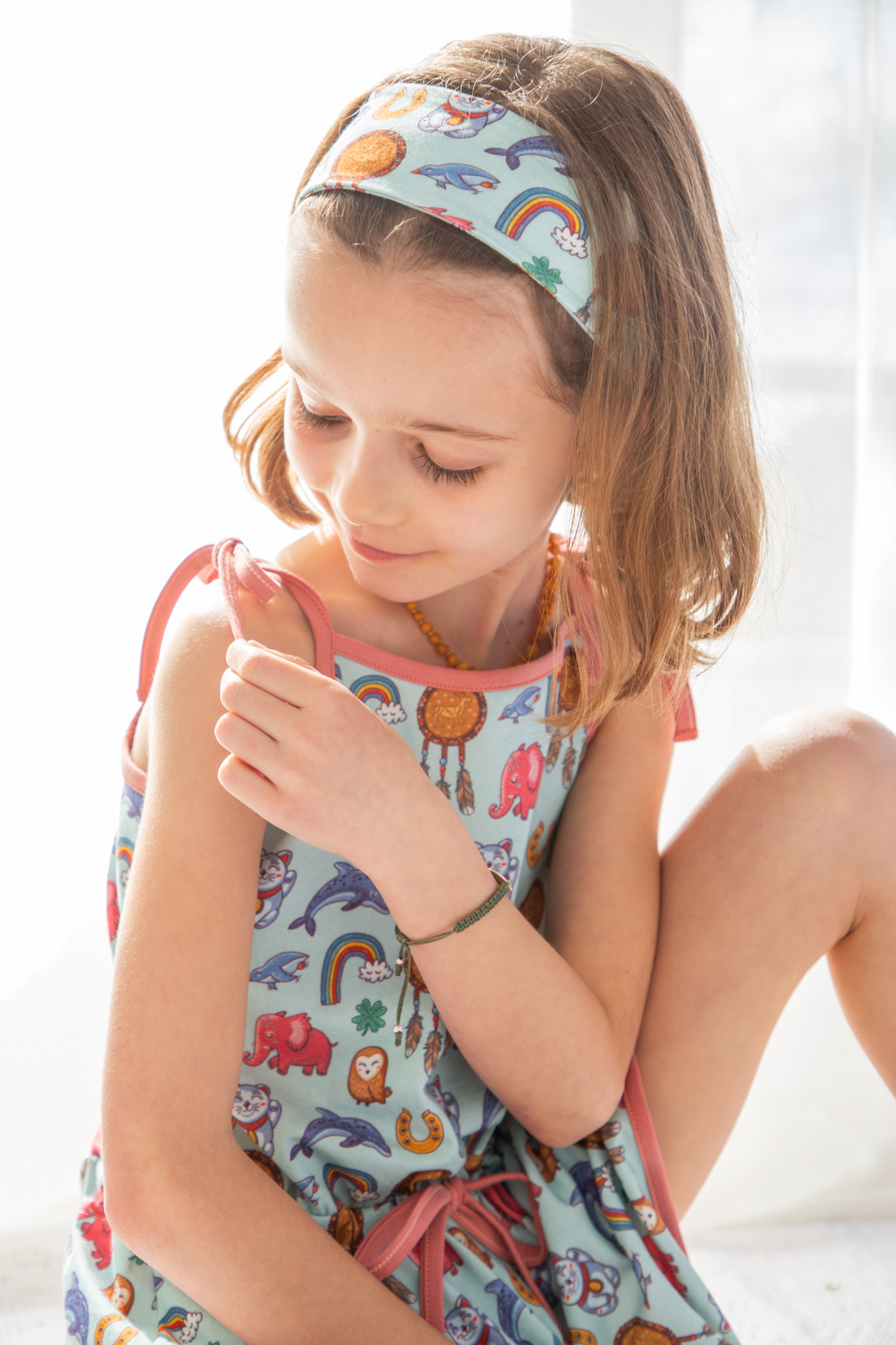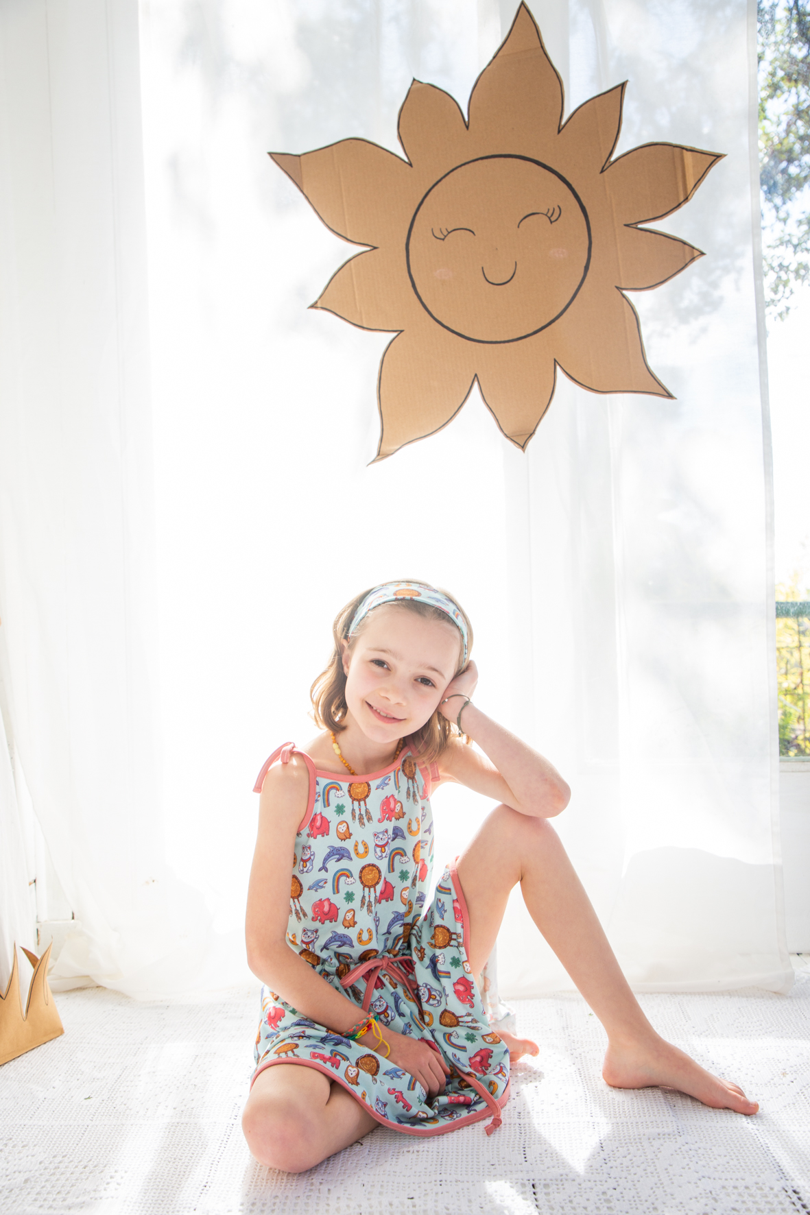 Este divertido tejido con simbolos de Buena Suerte que os transportará a felices tardes de verano.
